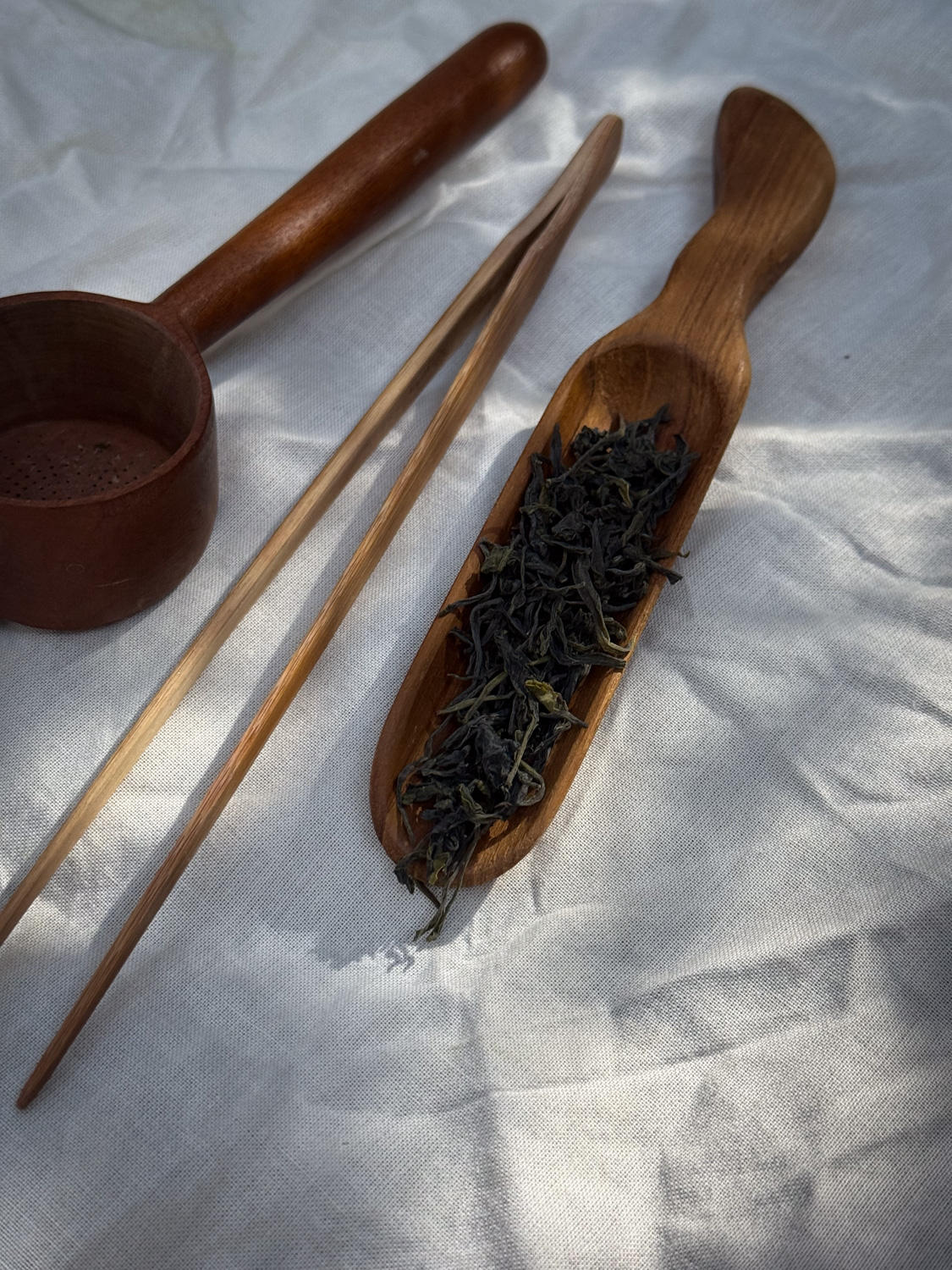 - Chashaku (colher de bambu): feito de uma peça única de bambu, o chashaku é perfeito para dosar o matcha (1 colher de chashaku = 1g de matcha).