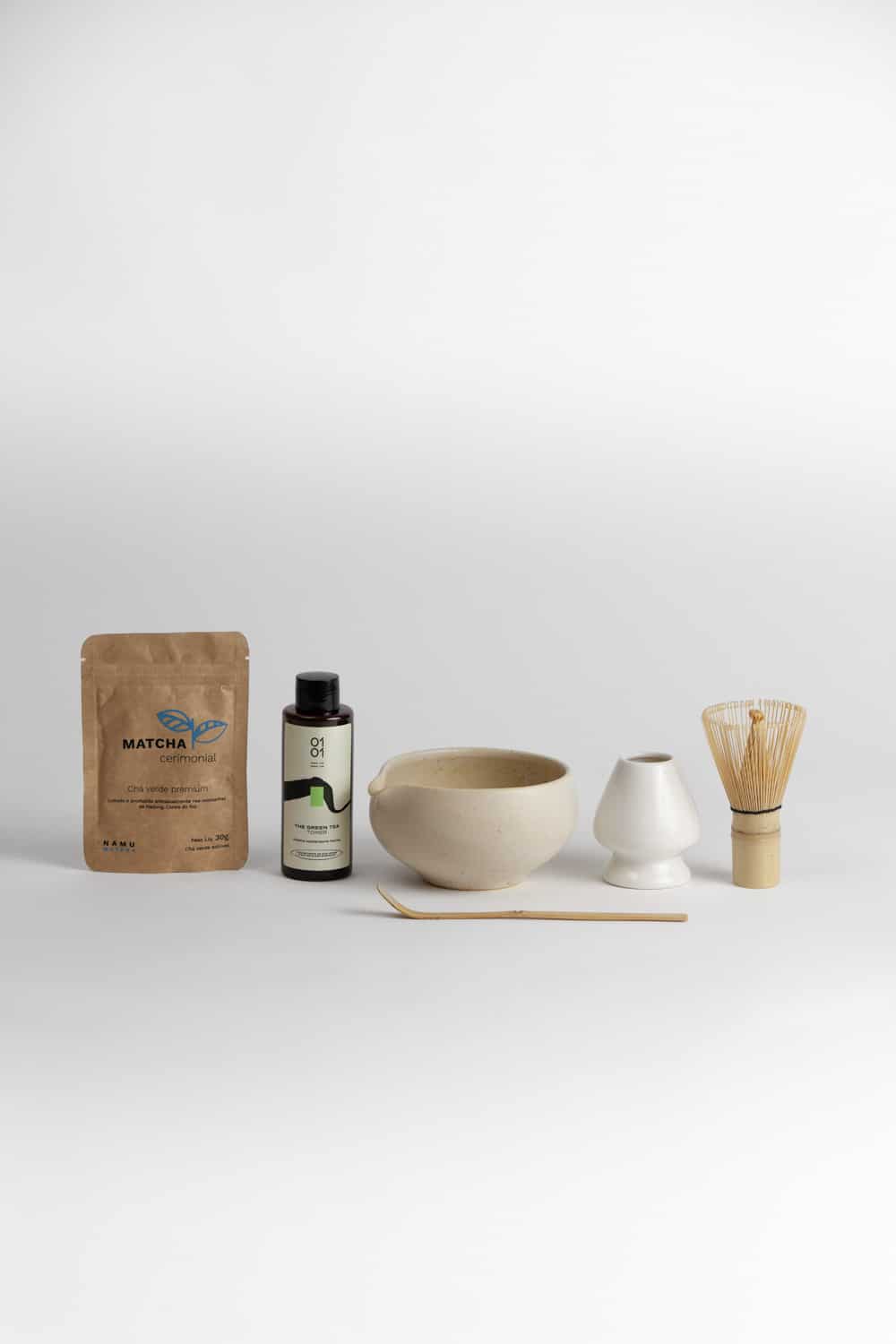 Na Namu Matcha, oferecemos kits completos com todos os acessórios necessários para uma experiência autêntica.