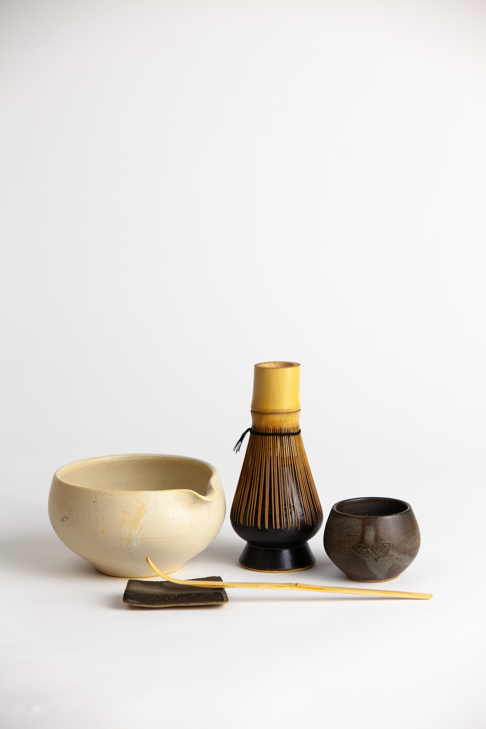 - Chashaku (colher de bambu): feito de uma peça única de bambu, o chashaku é perfeito para dosar o matcha (1 colher de chashaku = 1g de matcha).